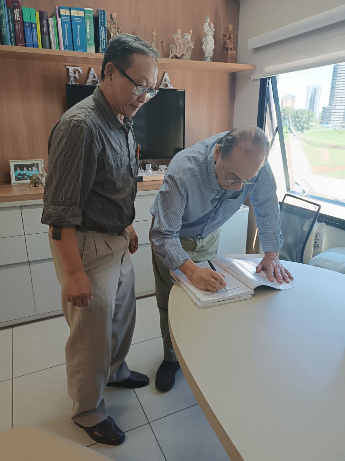Durante o encontro, o Prof. Dr. Mauad presenteou o Dr. Kim com dois exemplares de sua autoria, autografados: “Ultrassonografia Básica em Ginecologia” e “Ultrassonografia Básica em Obstetrícia”.