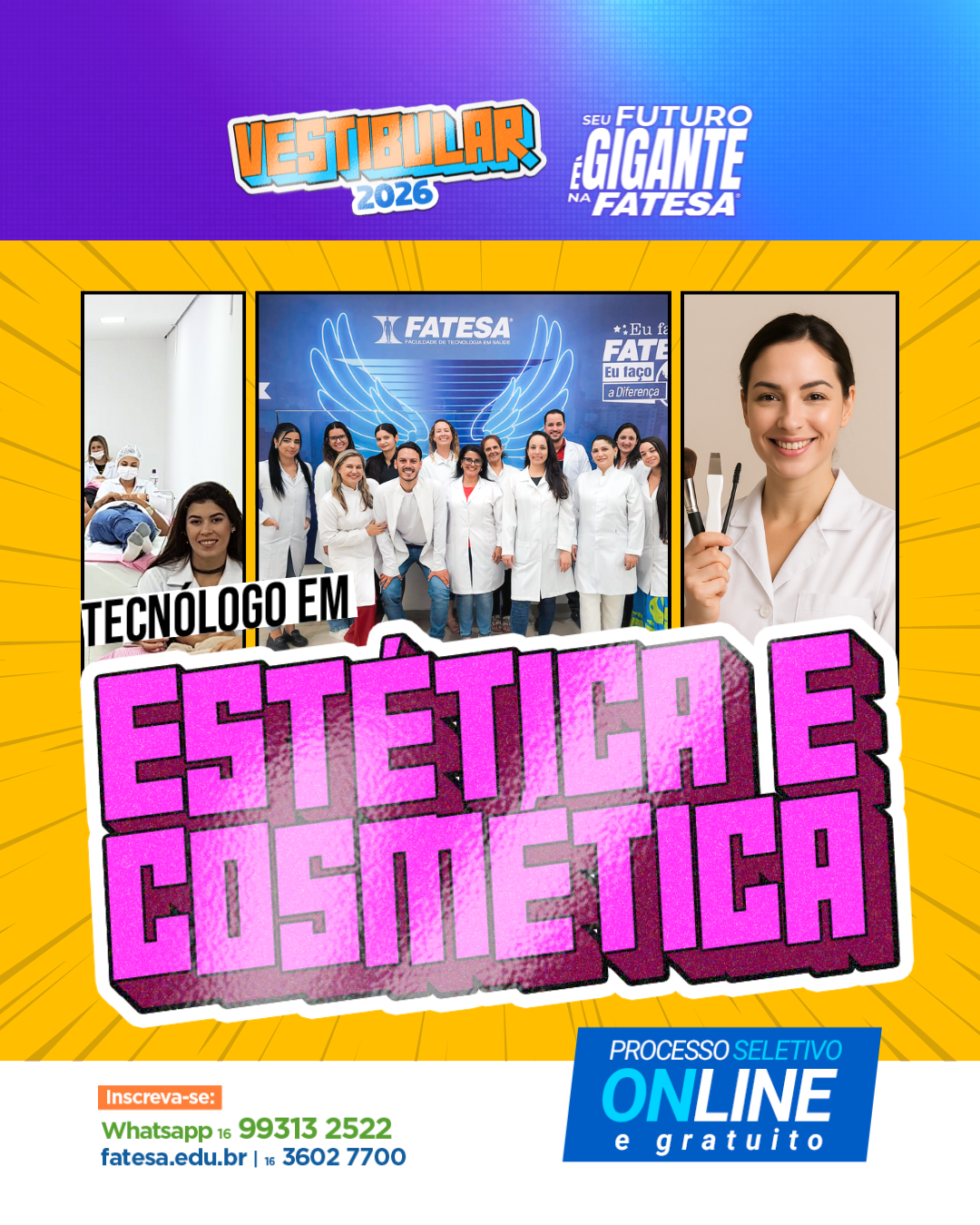 O grande atrativo para os novos ingressantes vai além do diploma: a faculdade é reconhecida por uma infraestrutura que dá condições de uma prática intensiva e preparo para o mercado de trabalho. Em um momento em que a tecnologia avança a passos largos, o curso de Radiologia da FATESA surge como um diferencial estratégico, preparando profissionais capazes de dominar diagnósticos de alta complexidade em um setor que demanda mão de obra qualificada de forma imediata. Da mesma forma, a graduação em Estética e Cosmética foca no rigor científico e na gestão de alta performance, atendendo a um mercado de beleza que resiste a crises e se expande anualmente no Brasil, salienta as coordenações dos cursos.